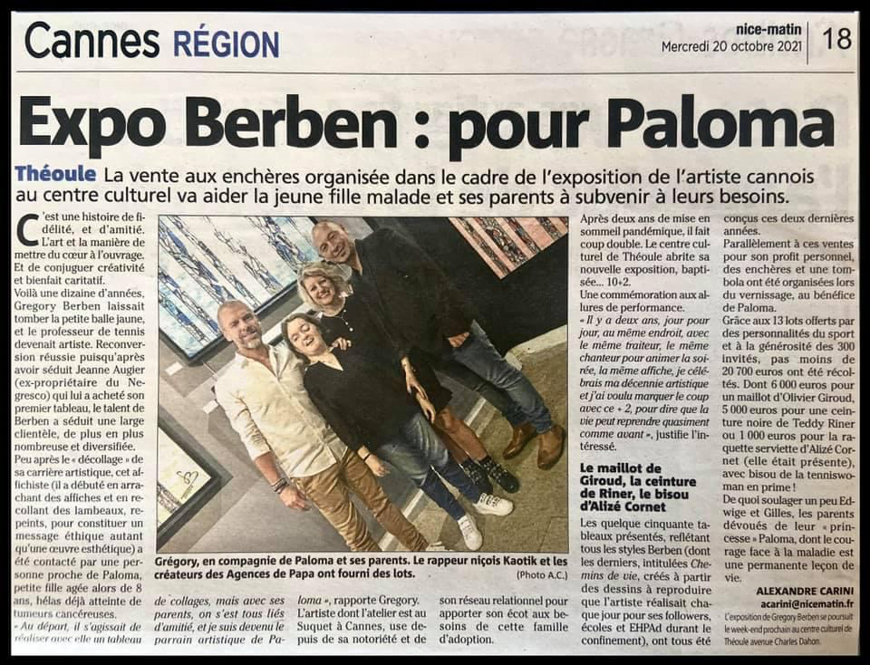 Exposition Gregory BERBENPar Tomd / 20 octobre 2021 Nice-Matin 20 Octobre 2021: Exposition Gregory BERBEN