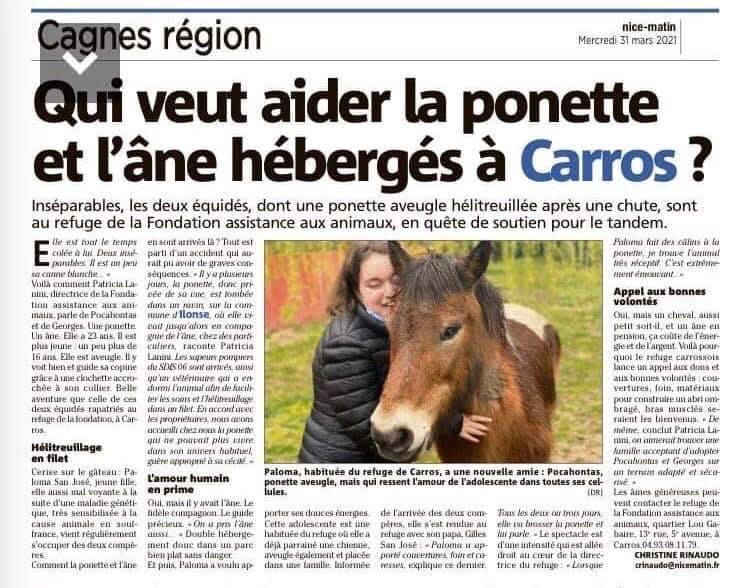 Nice-Matin 31 Mars 2021: Refuge de Carros