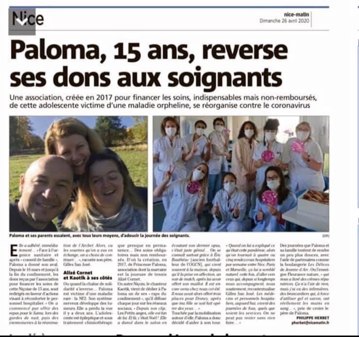 Nice-Matin 26 Avril 2020: soutien aux soignants