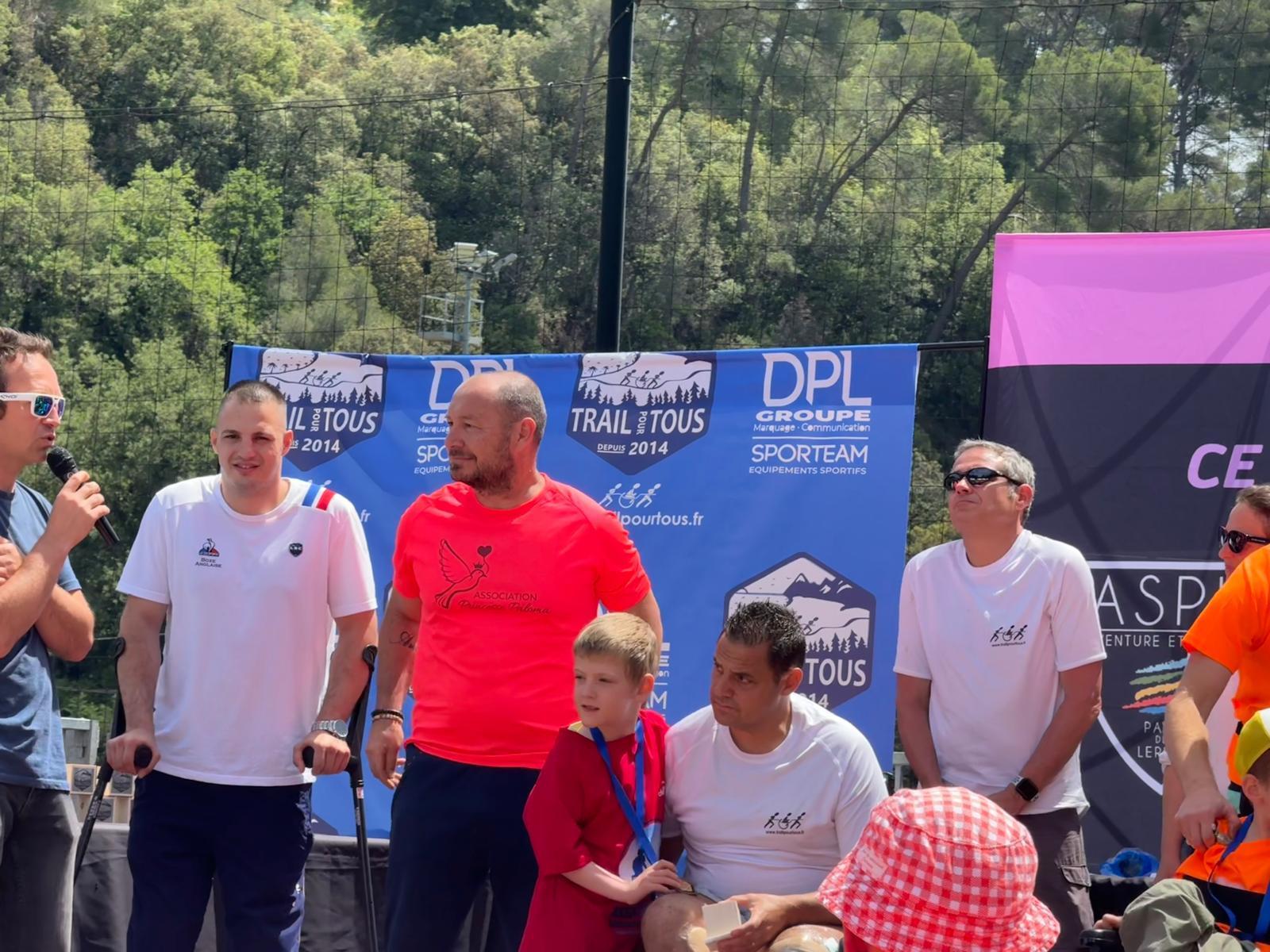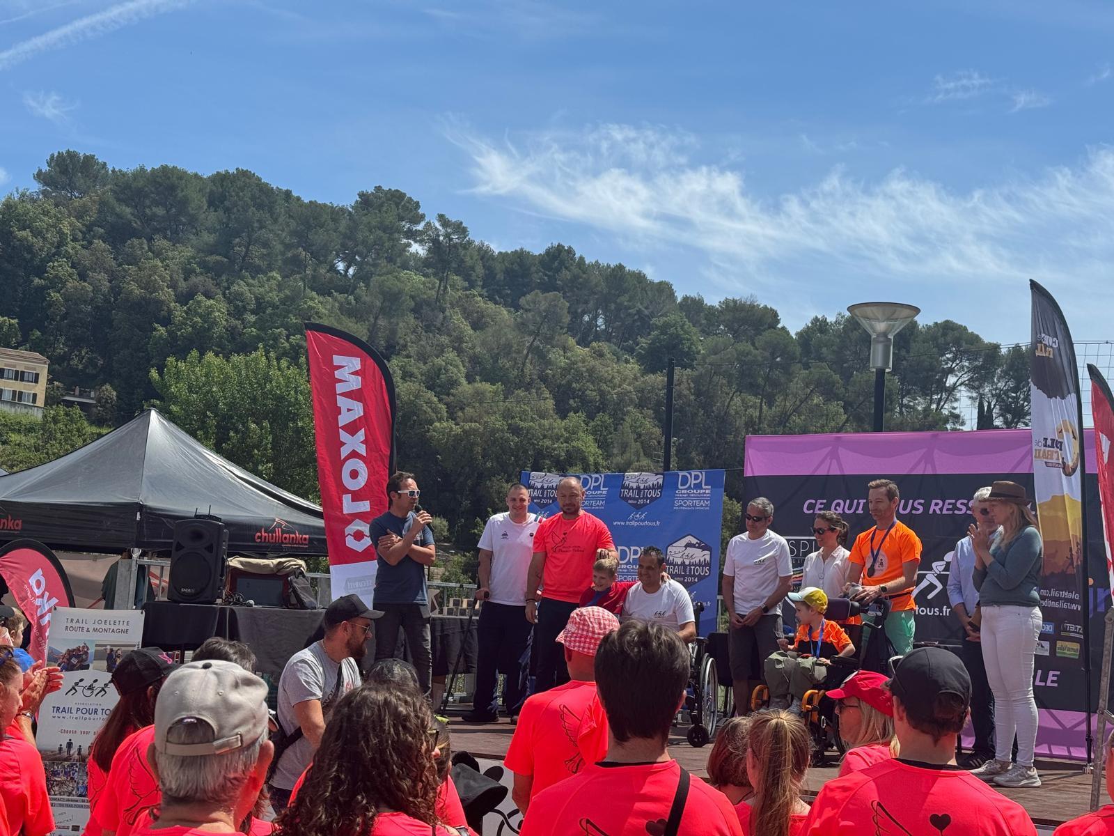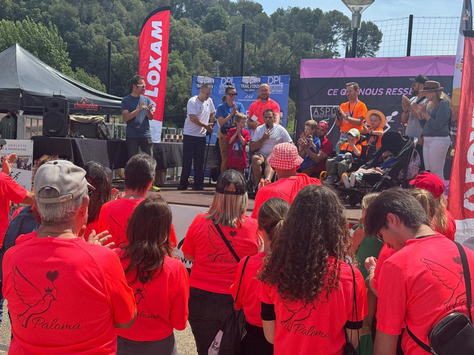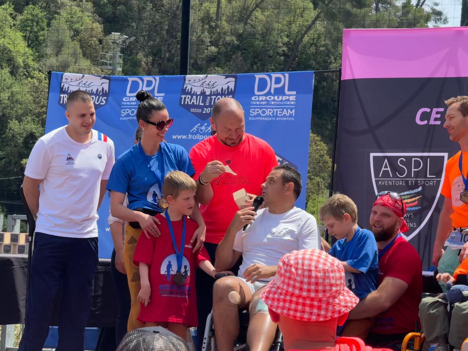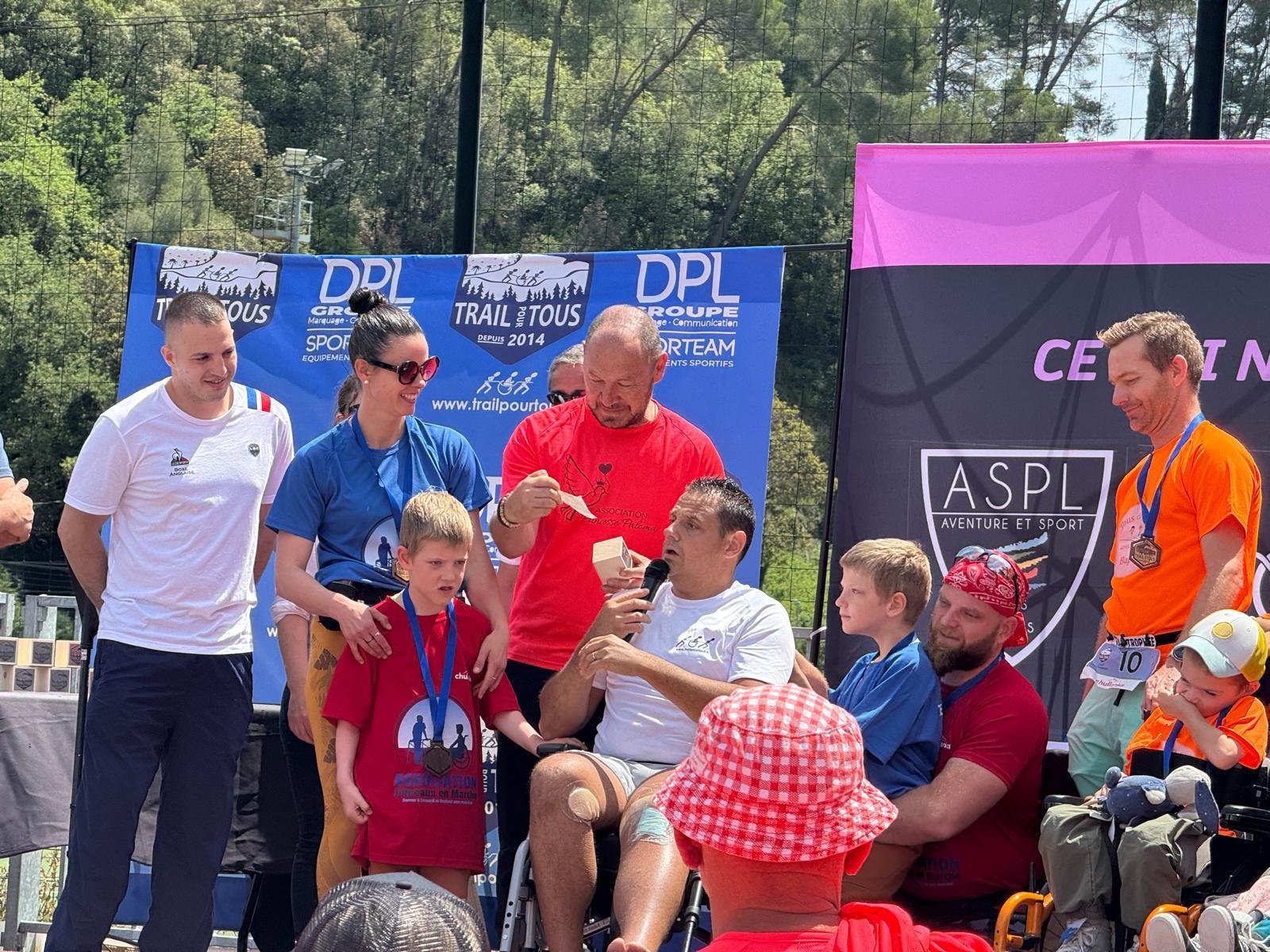Trail de BiotPar Tomd / 19 mai 2024 Les bénévoles de l’association Princesse Paloma ont œuvré sur le Trail Remise d’un chèque par l’association Trail pour Tous