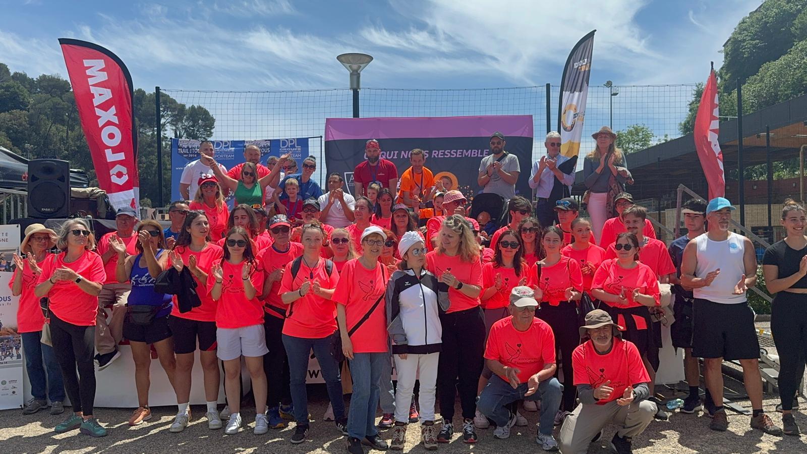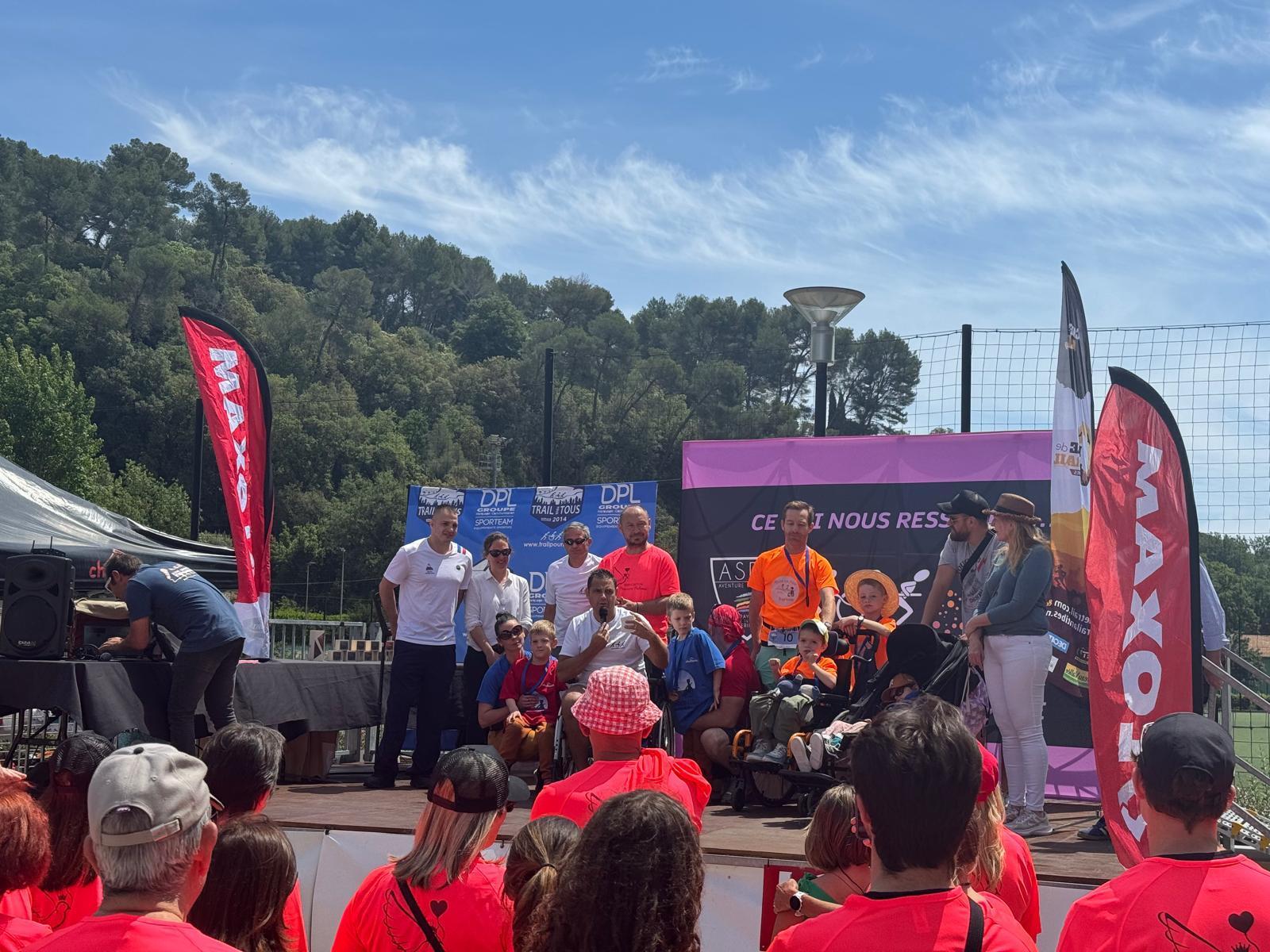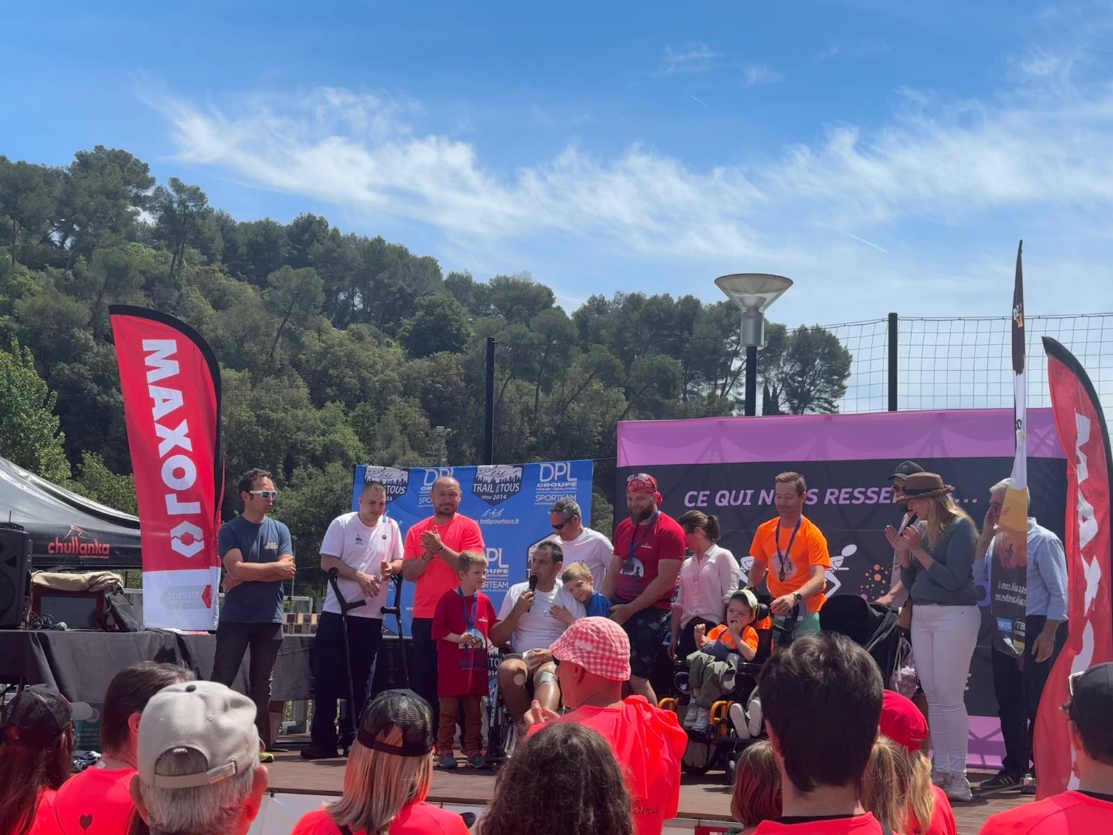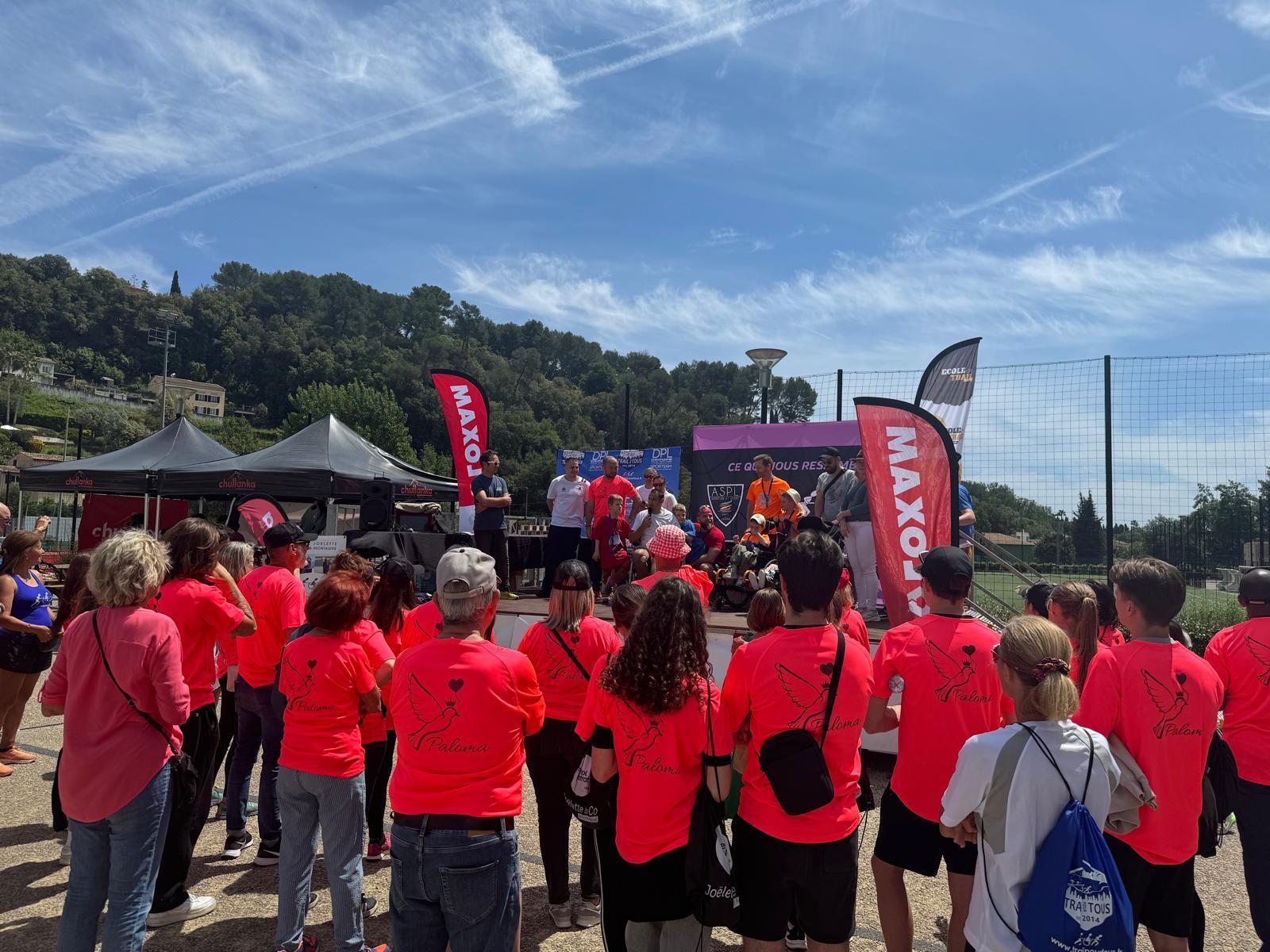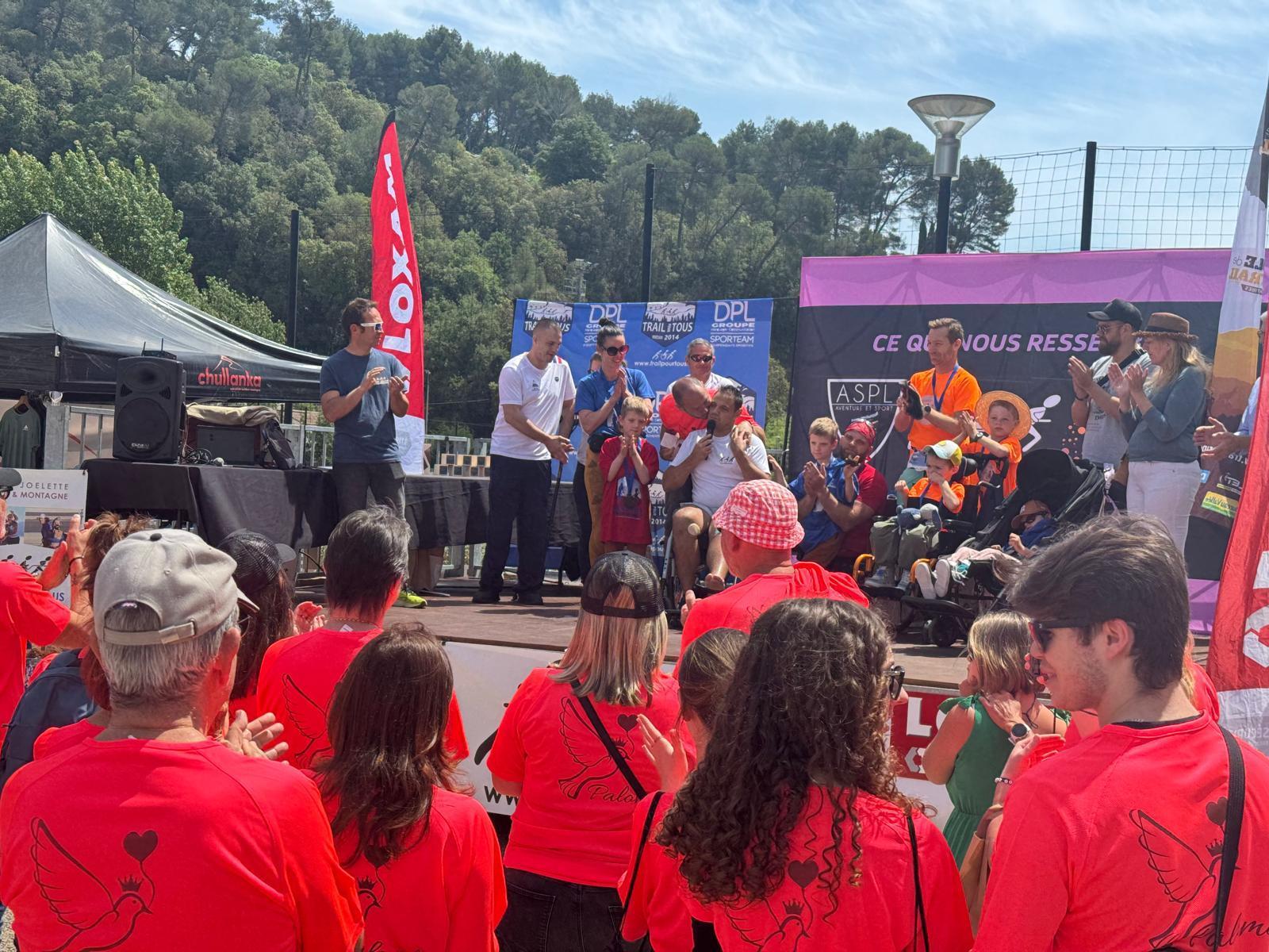 Trail de BiotPar Tomd / 19 mai 2024 Les bénévoles de l’association Princesse Paloma ont œuvré sur le Trail Remise d’un chèque par l’association Trail pour Tous
