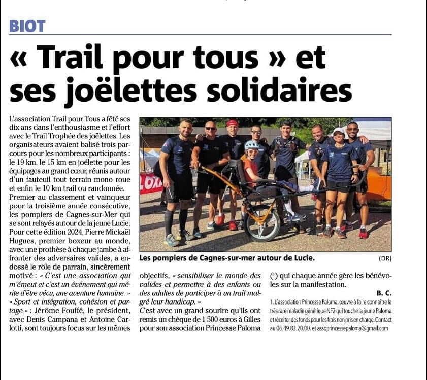 Trail de BiotPar Tomd / 29 mai 2024 Trail de Biot avec « Trail pour tous » et les bénévoles de l’association Princesse Paloma sur le parcours.