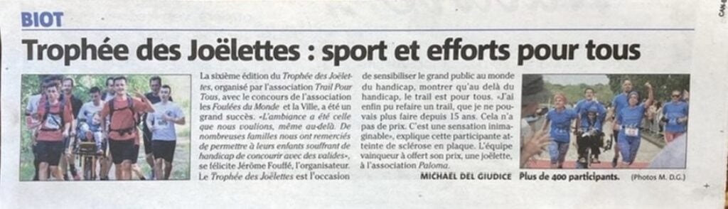 Trophée des joelettes organisé par l’association Trail pour tous avec une magnifique surprise, une joelette offerte à Paloma.